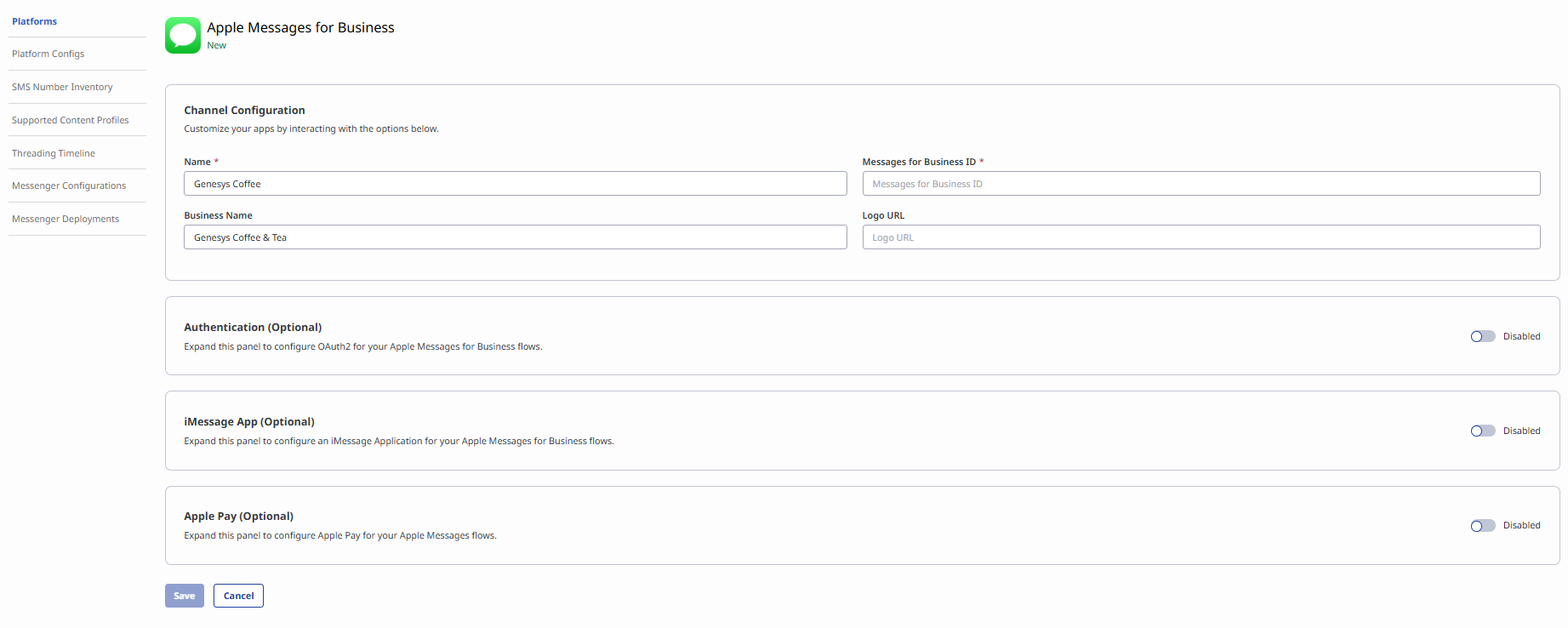 - プラットフォームのアップデート: 管理者は、設定するAMB統合Genesys Cloud 内のネイティブ チャネルとして使用します。C AMBの設定により、認証、iMessage、あらゆる高度な AMB 機能をサポートする Apple Pay 構成。