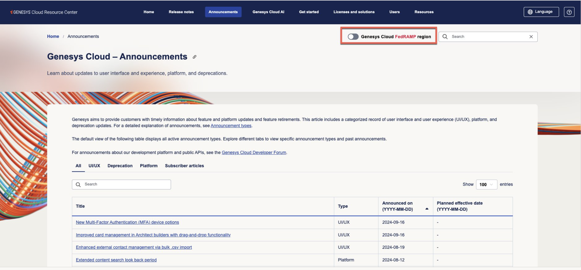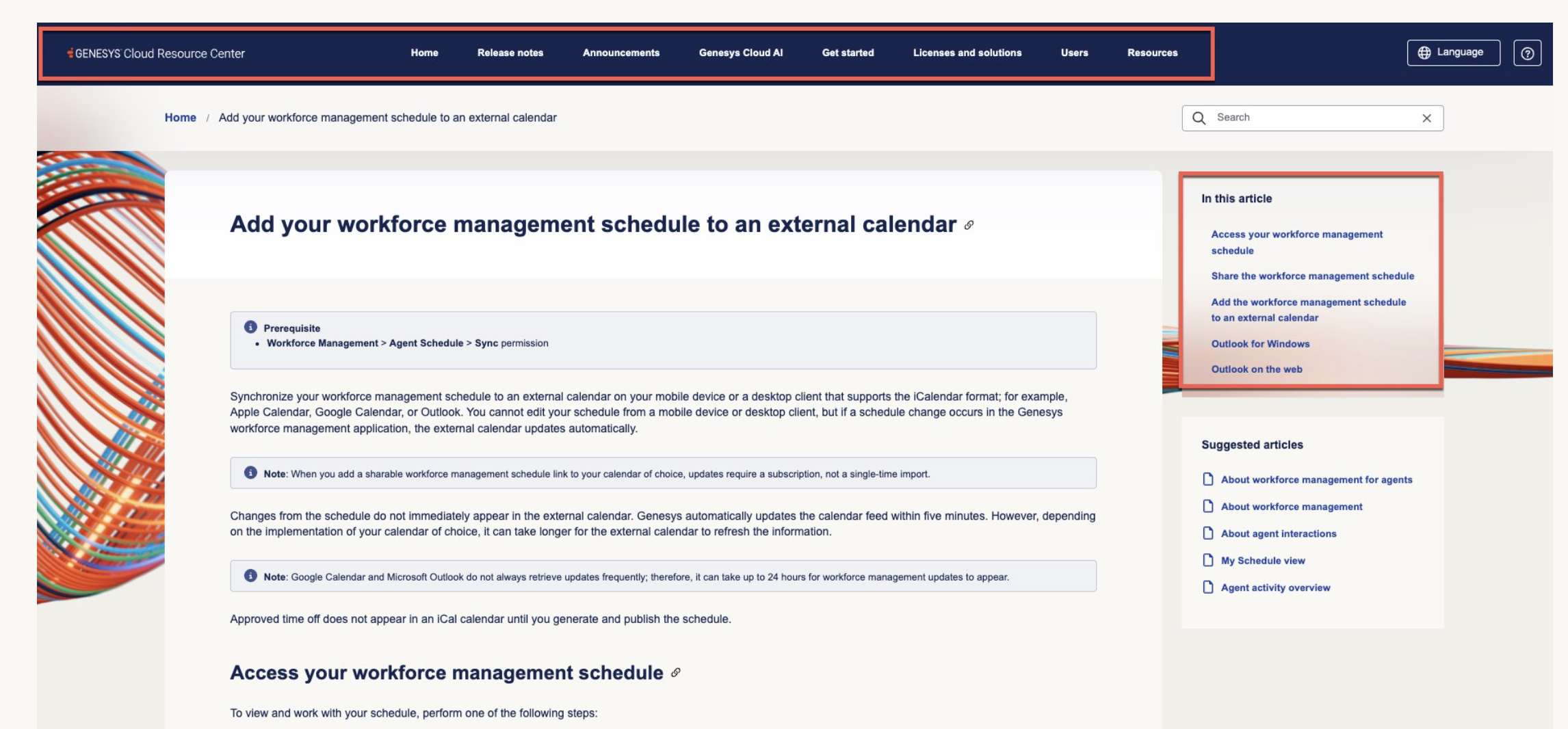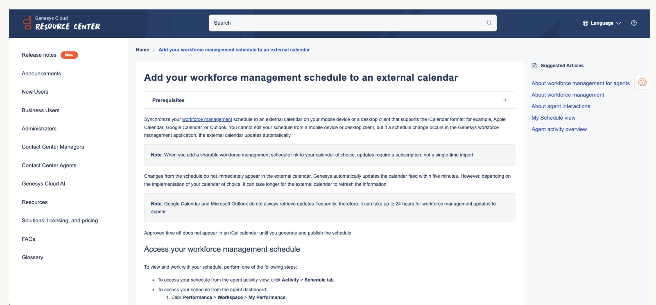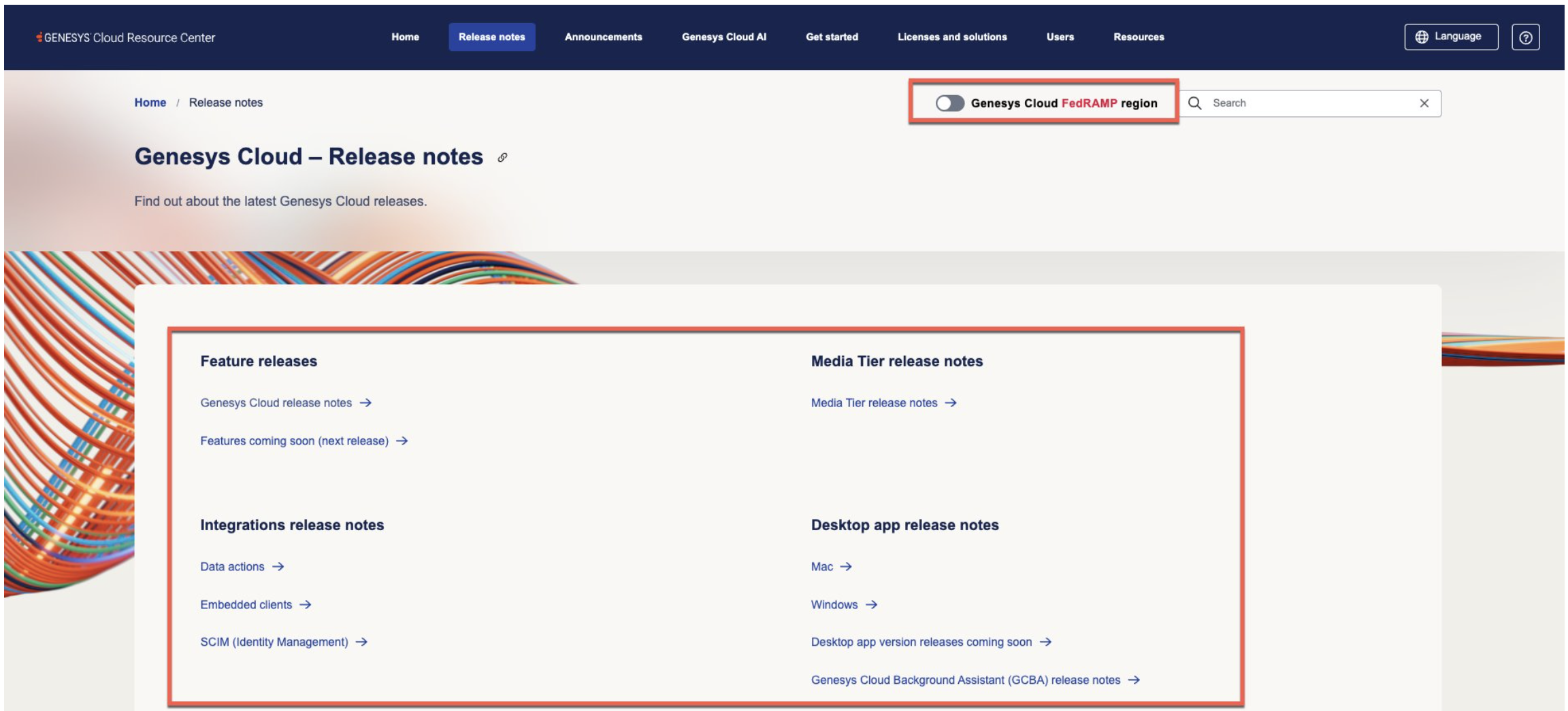 今後のリリースでは、Genesys Cloud Resource Centerはヘルプ.genesys.cloud 。 このアップデートにより、リソース センターが Genesys Cloud ブランドと整合され、サイト全体のナビゲーションが改善され、リリース ノートの使いやすさが向上し、ローカリゼーション サポートが改善されます。