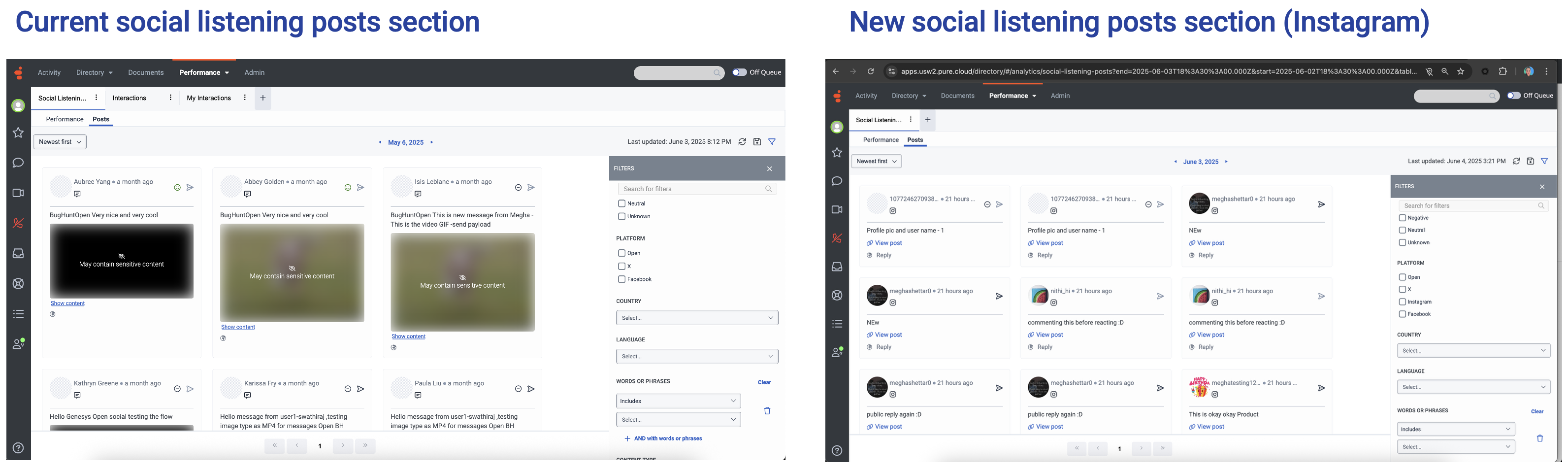 このアップデートにより、組織は 3 つの主要ソーシャル プラットフォームすべてにわたって一貫した顧客エクスペリエンスを提供できるようになります。Instagram、X、Facebook。管理者は、ボットまたはライブエージェントによる追加の処理が必要な公開 Instagram 投稿を識別するためのツールも利用できるようになります。