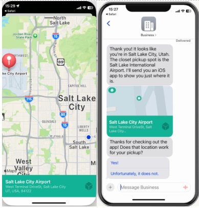 iMessage アプリのサポートにより、ボットは航空会社の予約インターフェースなどのアプリ拡張機能を、AMB チャット内でユーザーの Apple デバイスに送信できるようになりました。消費者は会話を終了せずに、アプリケーションと対話できます (たとえば、フライトを更新します)。アプリのインタラクションが完了すると、会話はボットとシームレスに継続されるか、人間のエージェントにエスカレートされます。エージェントは、完全なコンテキストを保持しながら、iMessage アプリが送信されたことを確認できます。