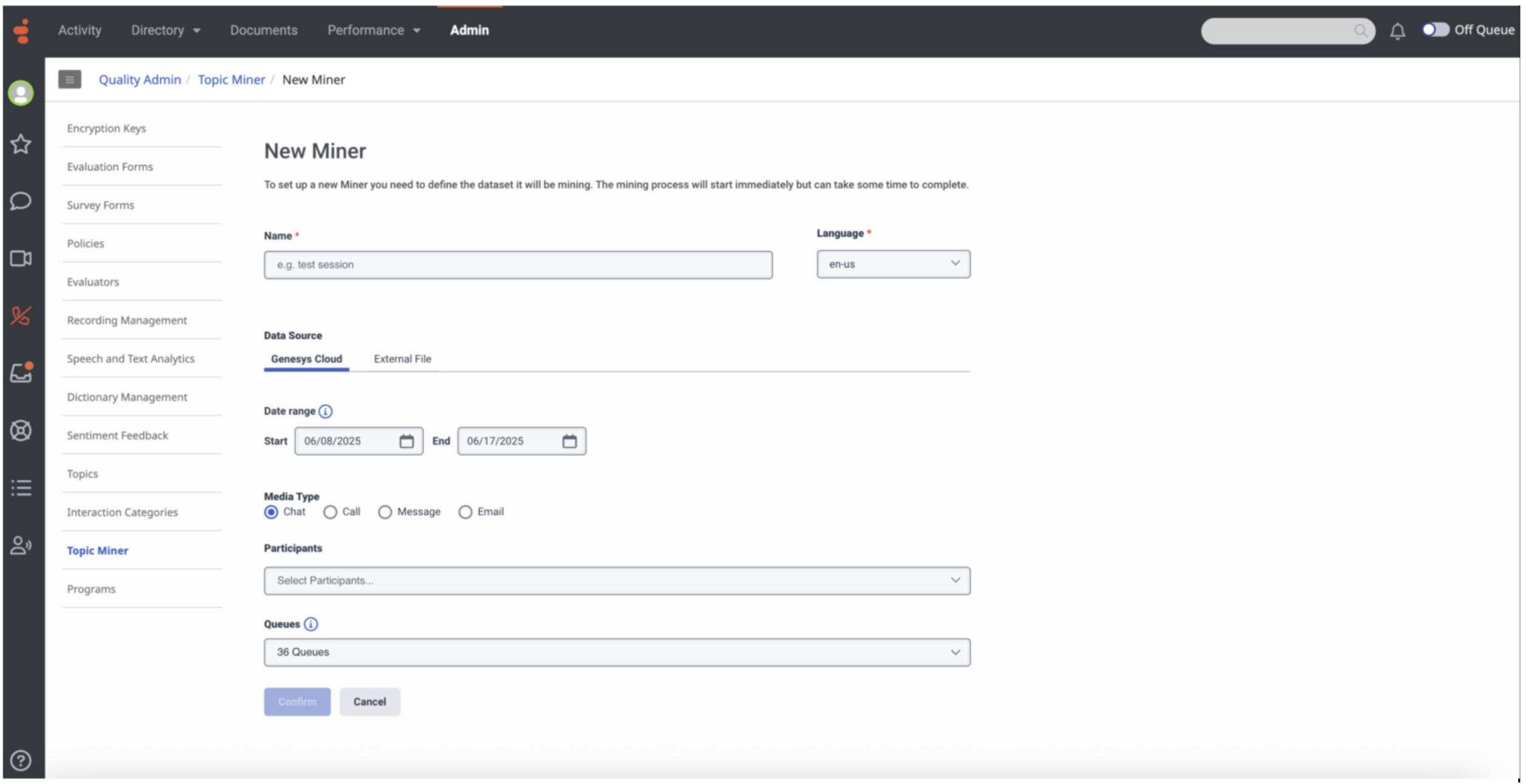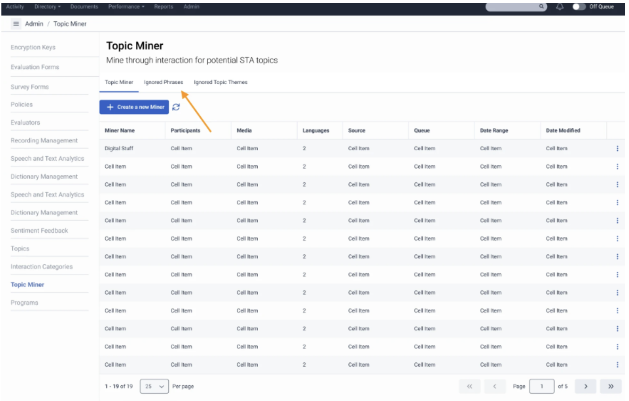 リリースされると、ユーザーは Topic Miner の新しいオプションと更新されたインターフェースを目にすることになります。管理者は無視リストを管理するための権限を確認する必要があります。現時点では他のアクションは必要ありません。UIの変更前と変更後