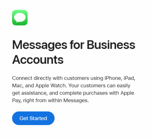 - メッセージングプラットフォームページで、ビジネス向けAppleメッセージ。