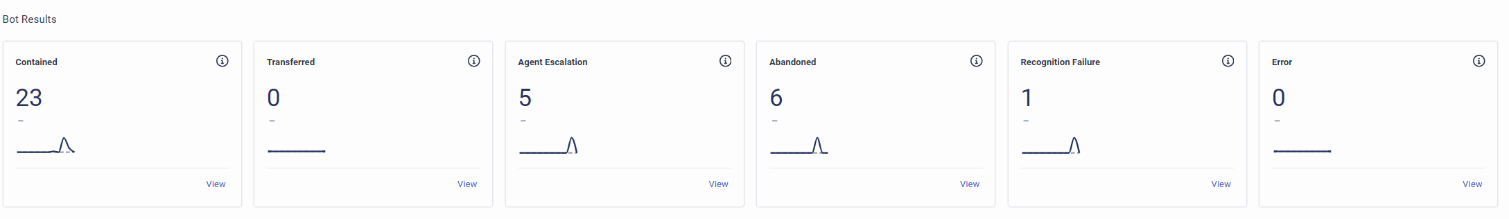 最適化ダッシュボードのボット結果セクションには、ボットの会話がどのように終了したかの結果が含まれ、以下のメトリクスが含まれます: