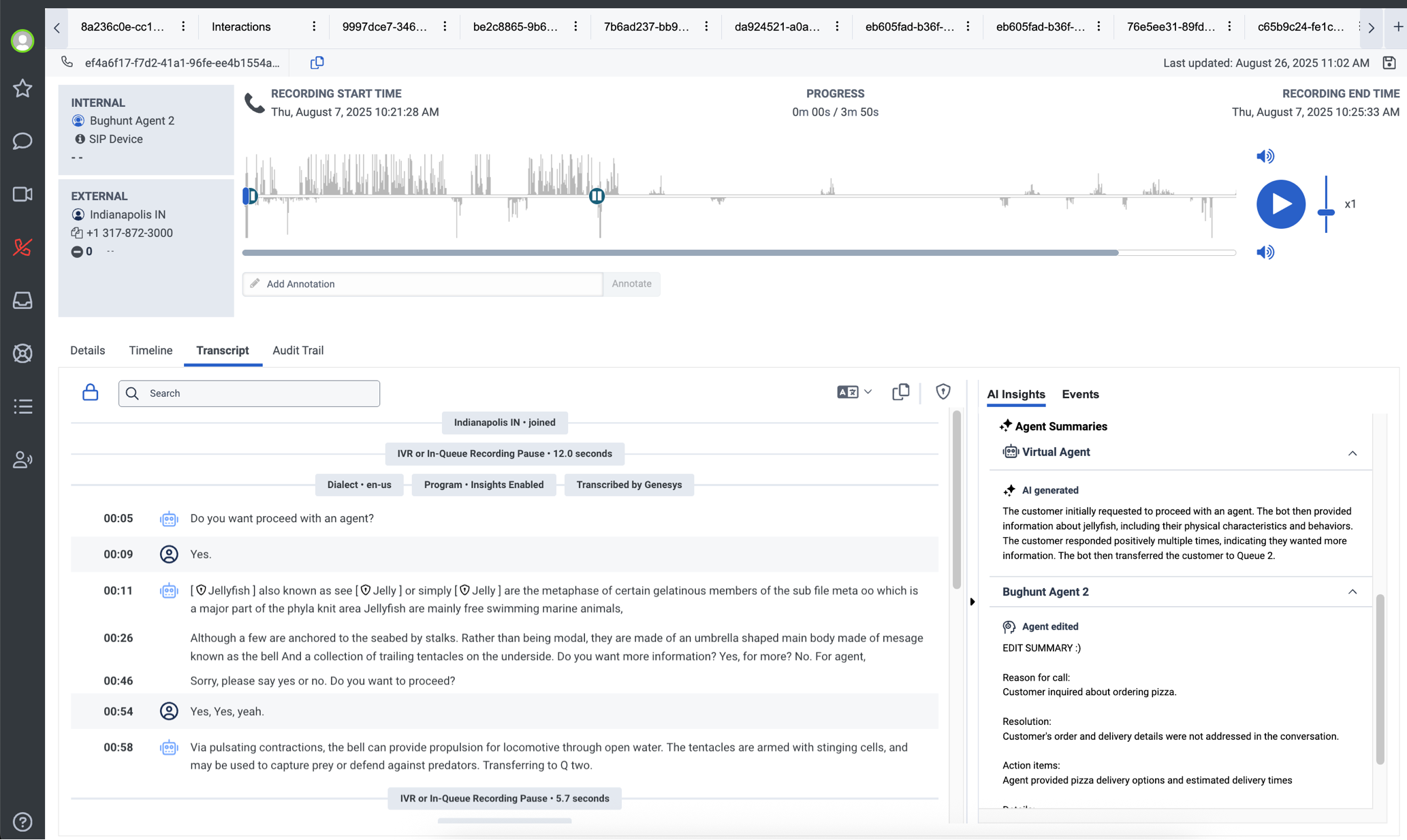 - インタラクションに複数のエージェントが含まれる場合、単一のインタラクション レベルの概要が表示されます。