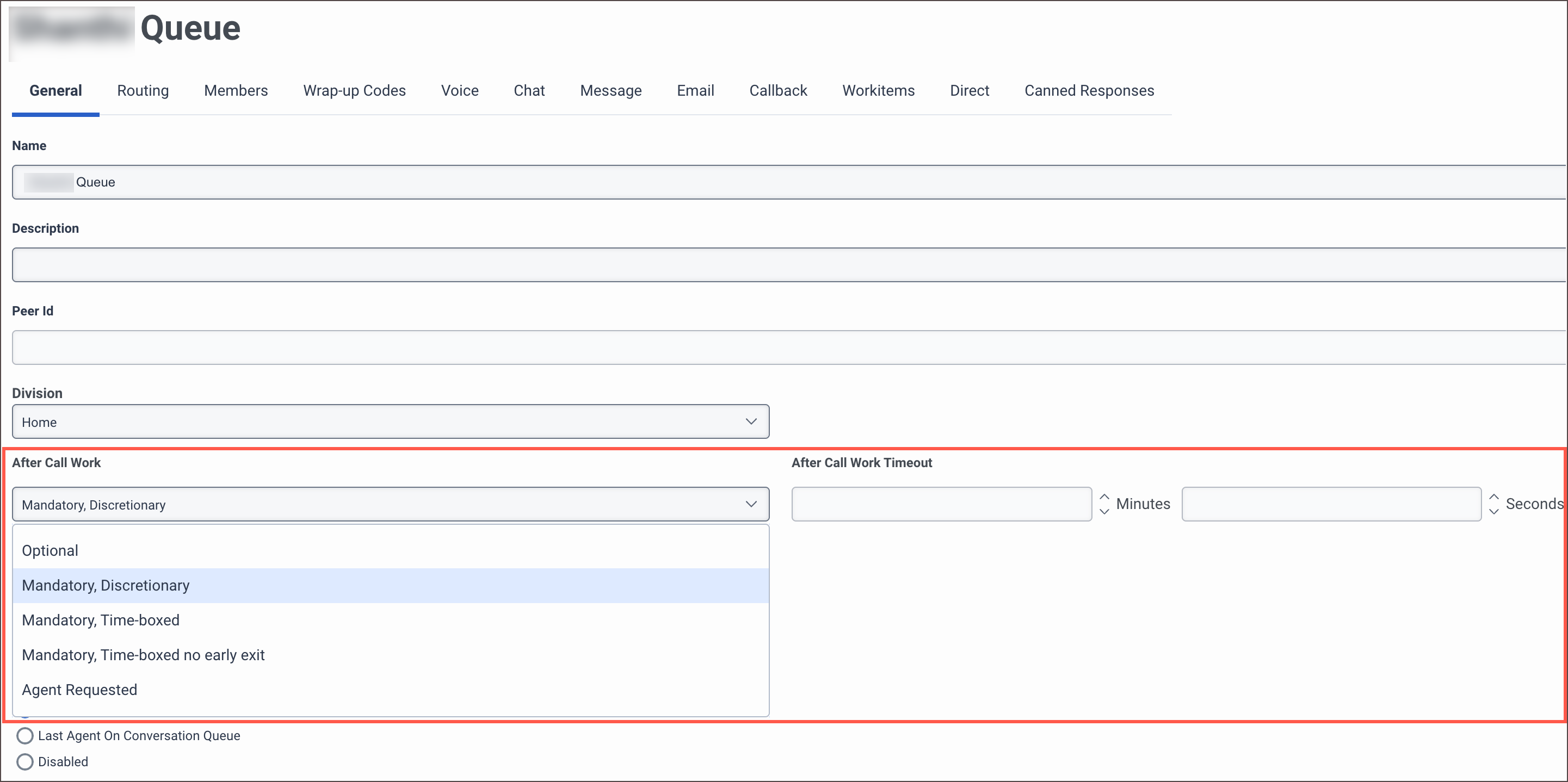 | 必須、任意 | このオプションを使用すると、エージェントはラップアップ ステータスを維持する時間を選択できます。 | これは Genesys Cloud と同様のアプローチを採用しており、エージェントは手動でインタラクションを終了する前に、必要なだけラップアップ モジュールに留まることができます。 |
